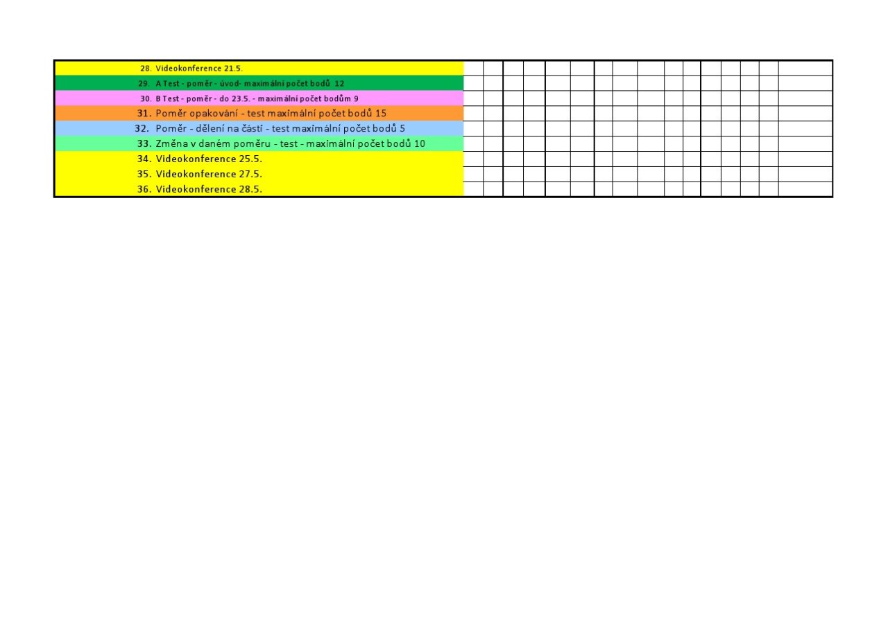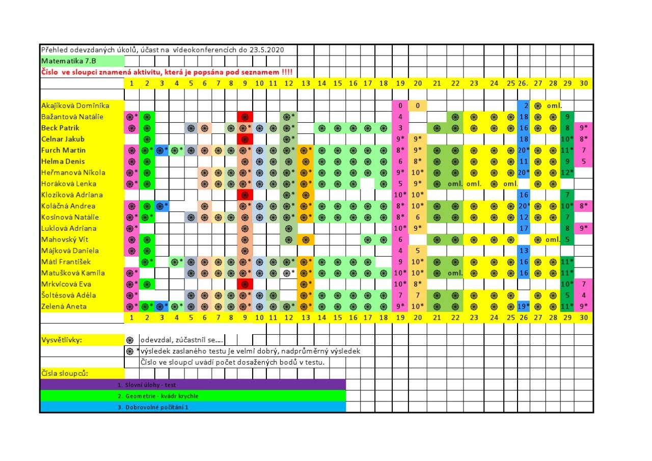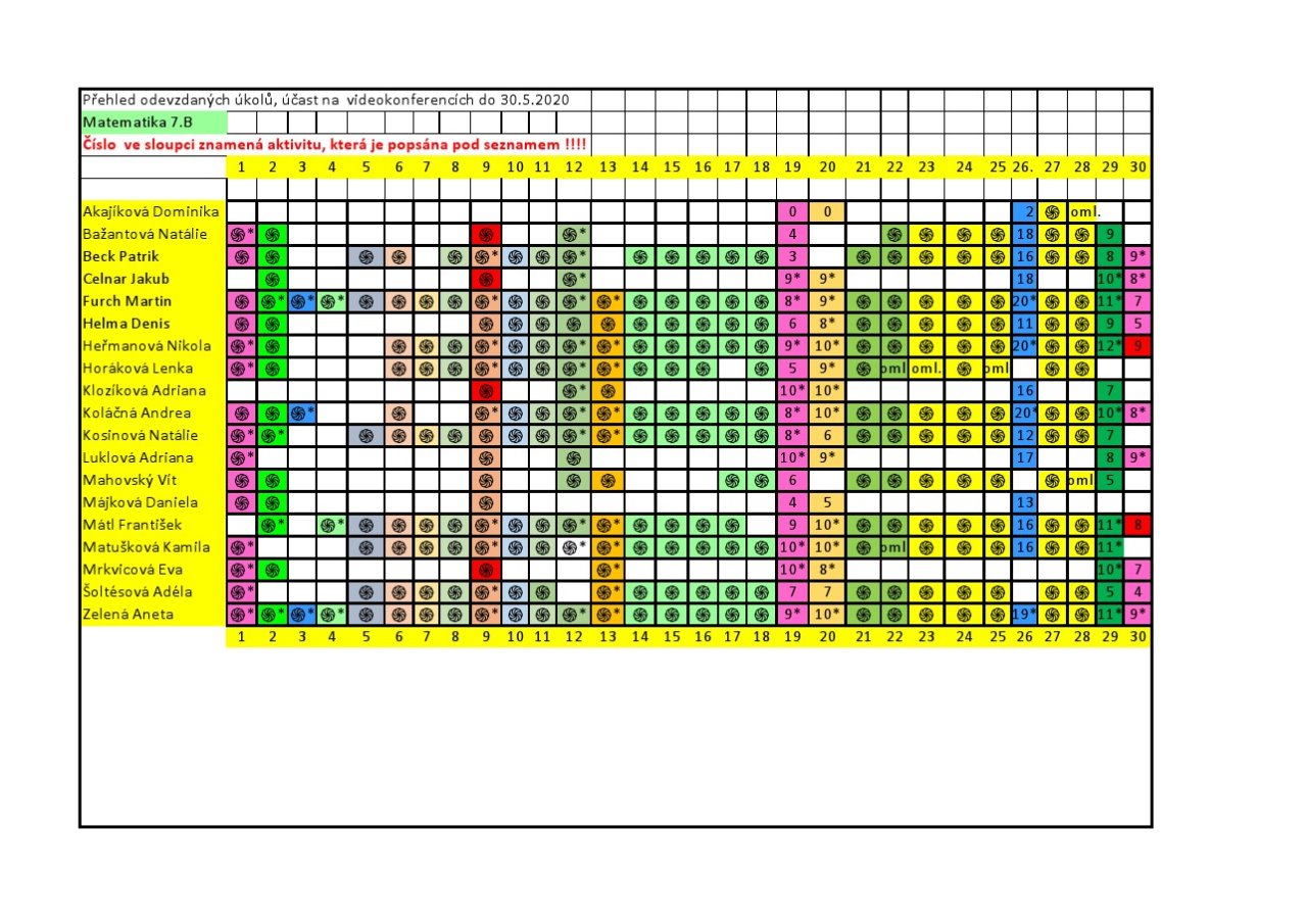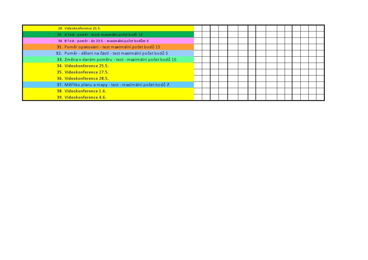 Níže je tabulka s přehledem všech splněných úkolů. Začíná poslední měsíc školního roku a v jeho průběhu se budou uzavírat známky pro vysvědčení. Nějaké známky už máme ze začátku tohoto pololetí a samozřejmě budu přihlížet k tomu, jak jsme pracovali na zadaných úkolech v době uzavření školy. Nebudou mě příliš zajímat chyby v zaslaných testech. Těch se může dopustit každý. Důležitější bude to, jak pravidelně jsem úkoly dostával.